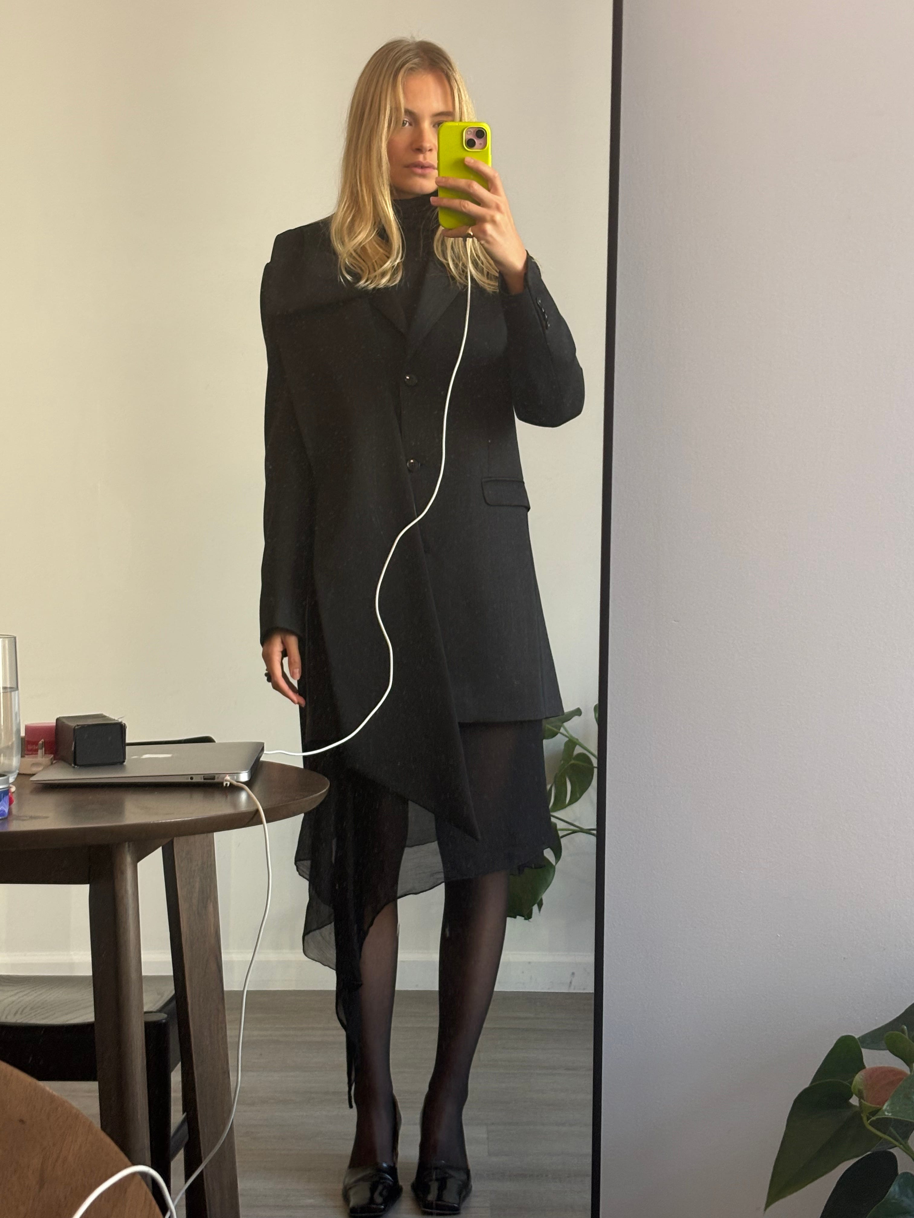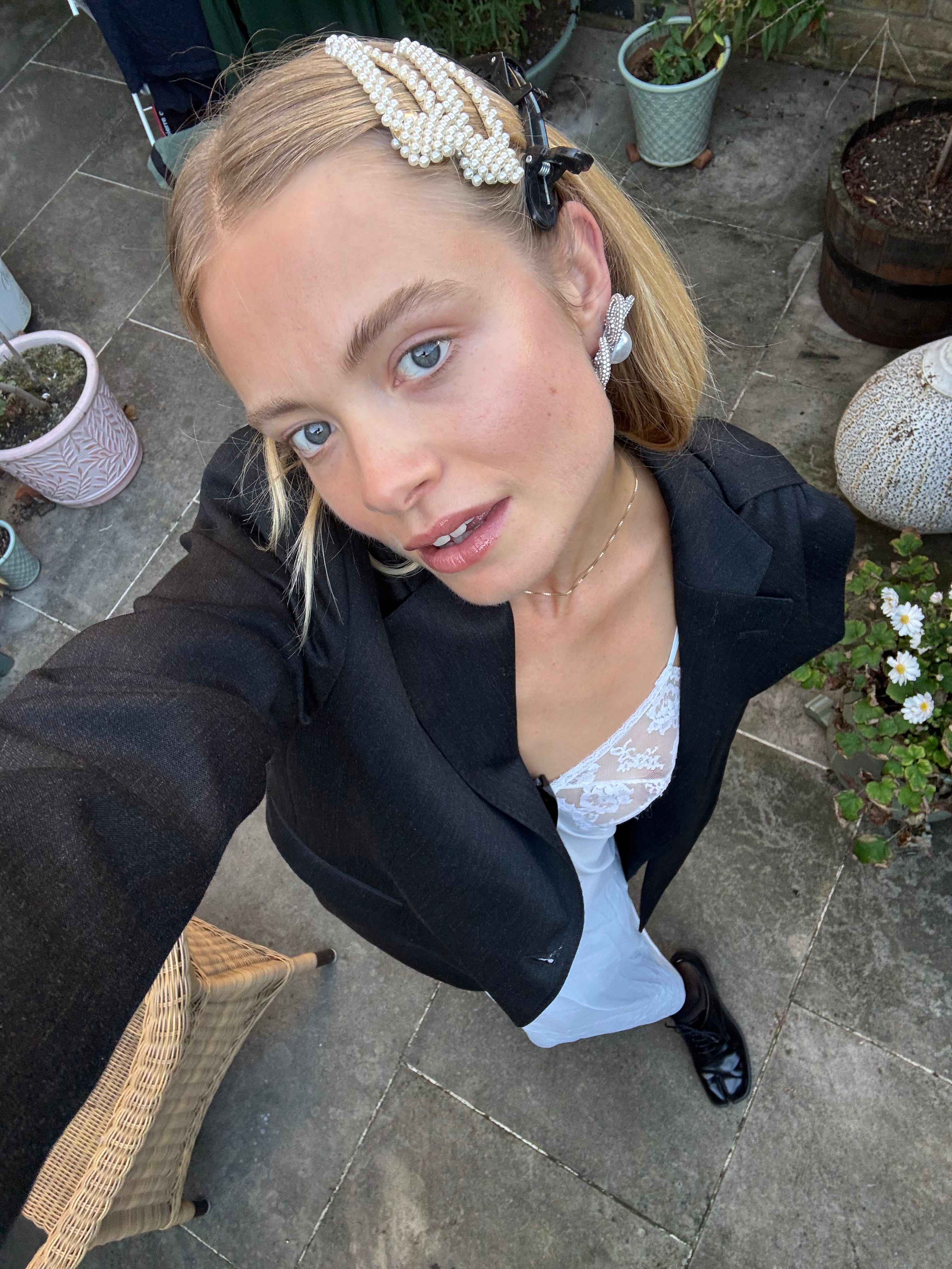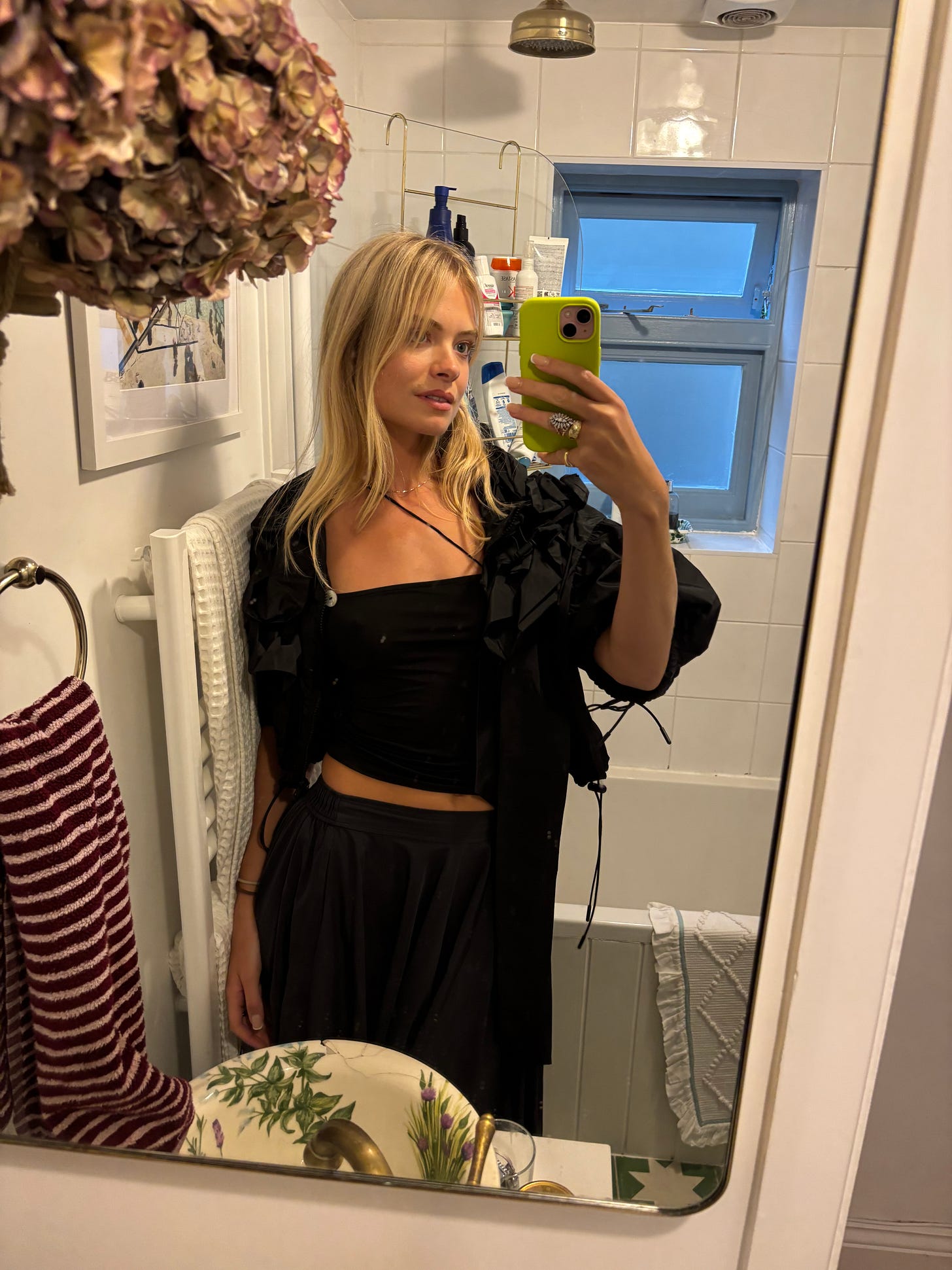 In reality my style centres upon uniform, a literal play on school meets work uniform consisting of some sort of smock dress, a shirt, trouser, blazer combo, sometimes all three at once. The key is that I have to fuck it up a bit. Full uniform is icky, a bit too on the nose. I oscillate hypothetically between Thom Brown tailoring, Miu Miu coquettishness and Simone Rocha punk princess. Alas only Simone actually lives in my wardrobe via Vinted or their holy sample sales. I have been known to queue 3 hours to get my mitts on her gracious designs. Reader, it was well worth it.