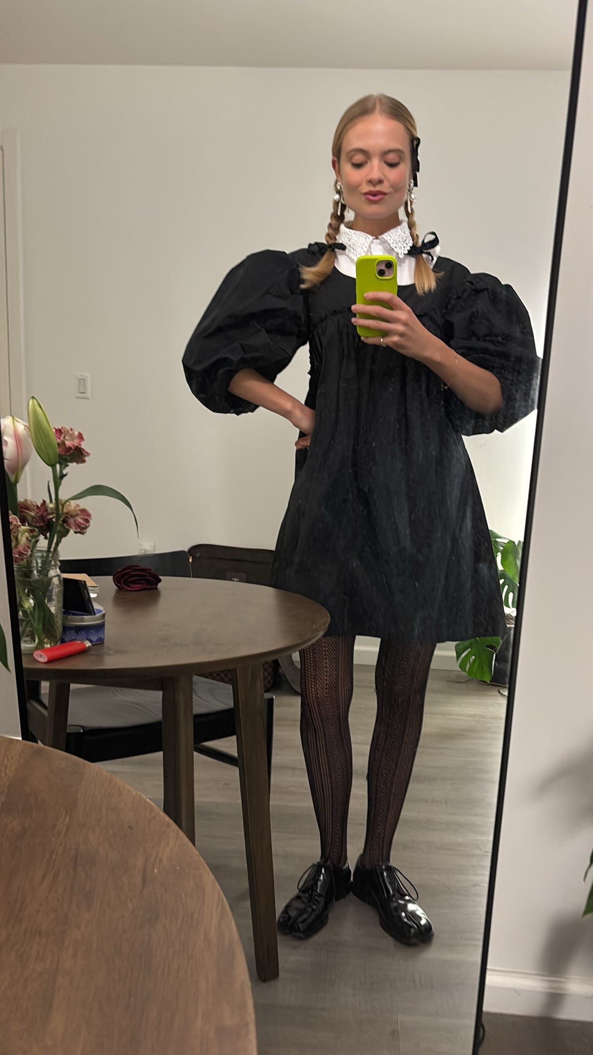 I recently wore one of her black dresses as an attempted Wednesday Adams for Halloween. Hopefully you can tell which is costume and with is just for real life.