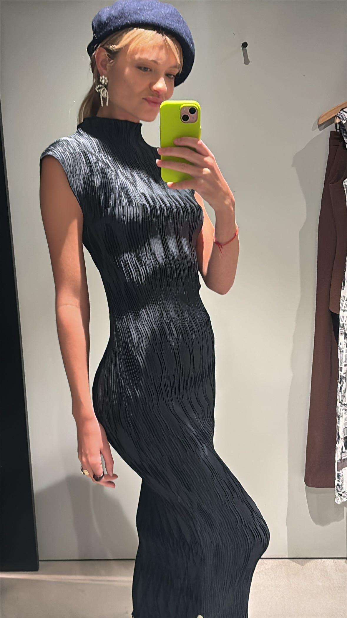 Note the ruching and pleating. They disguise and distort. One day I hope I can swap the high street for Issey Miyake Pleats Please. It’s the most perfect period appropriate fabric, shape, weight, it’s everything. He is an undisputed genius to be leaned on for all of your days of the month of course. But I mean IMAGINE slipping on one of his supple and sculptural creations when you feel like a spiky football boot is scraping down your innards. It’s got to help surely?
